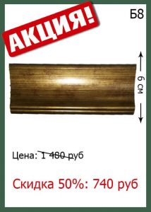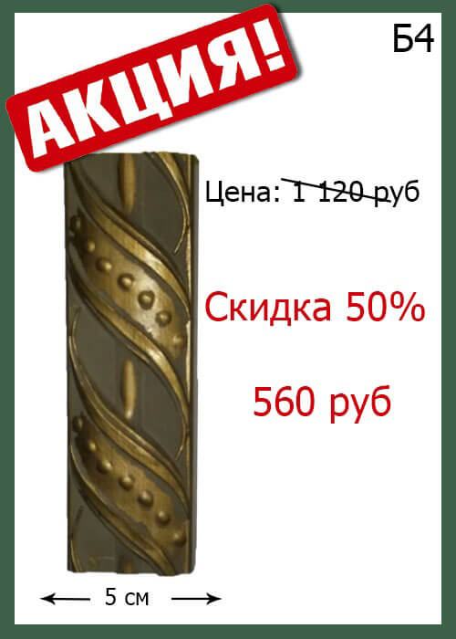 В связи с ликвидацией коллекции деревянного багета, скидка 50 %. Количество и возможность заказа вы можете уточнить: 1. По телефонам: 8(812) 579-59-20 8(962) 686-85-78 2. Написать менеджеру Вконтакте>> 3. Оставив свой контакт на главной странице Перейти>> Посмотреть весь ассортимент вы можете в разделе Скидки>>